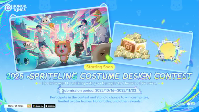 What’s more, starting October 16, the 2025 Spriteling Costume Design Contest invites players to showcase their creativity and design a unique look for the Cat Spriteling under the theme “Voyage,” inspired by interstellar adventures, ocean voyages, or other imaginative journeys. Participants can submit their designs until November 2 for a chance to win cash prizes of up to USD 1,500, exclusive in-game rewards, and special creator titles including Superstar Creator, Master Creator, and Budding Creator. Shortlisted entries will go through community voting and expert reviews throughout November, with final winners announced on December 5. As Honor of Kings enters its next decade, players’ creativity will continue to shape the gorge - join now and let your creativity set sail!