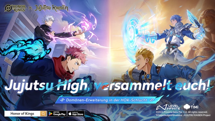 01. November 2024 - Entwickler TiMi Studio Group und Publisher Level geben bekannt, dass die Honor of Kings und Jujutsu Kaisen (JJK) Kollaboration heute startet. Drei Charaktere aus Jujutsu Kaisen sind im Laufe der Zusammenarbeit in Honor of Kings verfügbar und bringen eine Auswahl an themenbezogenen Inhalten und Ereignisse in das Spiel, über die sich die Spieler:innen freuen können.