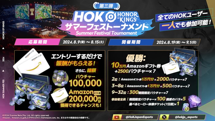 第 3 弾: 夏トーナメント大会を開催!『Honor Of Kings』をプレイしている日本のプレイヤーでしたら、どなたでも参加可能で、エントーするだけで報酬をもらえます。