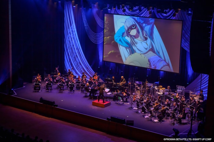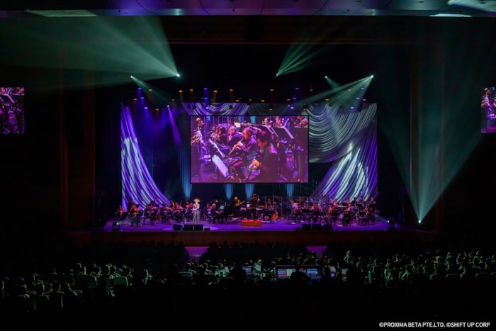 ステージ上では、『勝利の女神:NIKKE』を象徴する数々の楽曲が、本公演のために再構築されたオーケストラアレンジとして披露され、重厚かつ繊細なサウンドが会場を包み込みました。音楽の流れに寄り添うように物語性のある演出も展開され、観客は楽曲一つひとつに込められた情景や感情を追体験するような、深い没入感を味わいました。